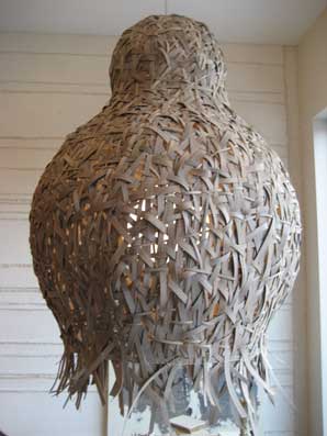 Michael Del Piero of Good Design in Bucktown emailed to remind us that Lucy Slivinski, an amazing sculptor she represents in her shop (see the woven oak light fixture above), has an installation opening tonight at the Flatfile Gallery, featuring yet more of her unique sculptural lighting (see wire lamp above). The show runs through March 27.