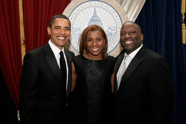 Les Coney, right, with his daughter and Obama at the president’s inauguration