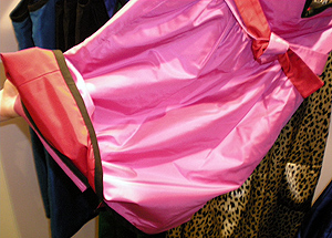 On a random note, check the bike in window of Rowley’s Bucktown store: It’s one of the cruisers that she designed for her spring 2008 runway show in New York. (The collection was very French sportif, so she had the models ride bikes down the runway for the finale.) This is why I like her: her stuff is priced within the realm of possibility (as in, it’s a splurge, but defendable once or twice in a year). And, she’s the type of designer who doesn’t take high fashion too seriously.