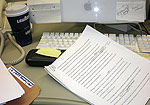 A draft of my essay for tonight, next to grande cup from Lavazza and my dirty keyboard