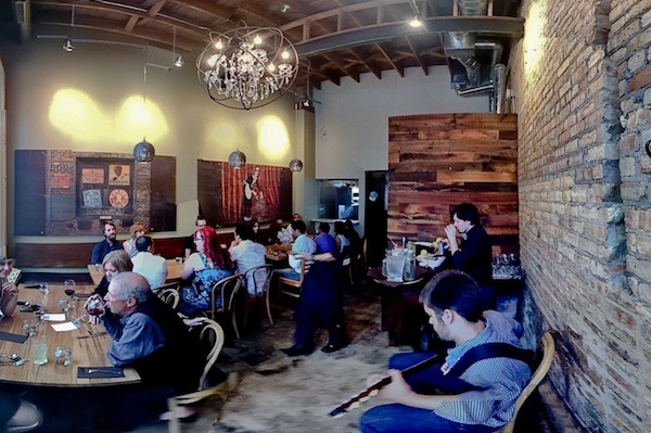 Scardino, the chef, studied at the homelessness- and poverty-fighting restaurant Inspiration Kitchens in Garfield Park and staged at Au Cheval, Grace, and Blackbird. His opening menu featured oyster shooter; a black bread lobster roll; what sounds to us like a layered terrine of foie gras, spam, beef, and blue-cheese grits; and a pistachio panna cotta with lavender-poached pears.