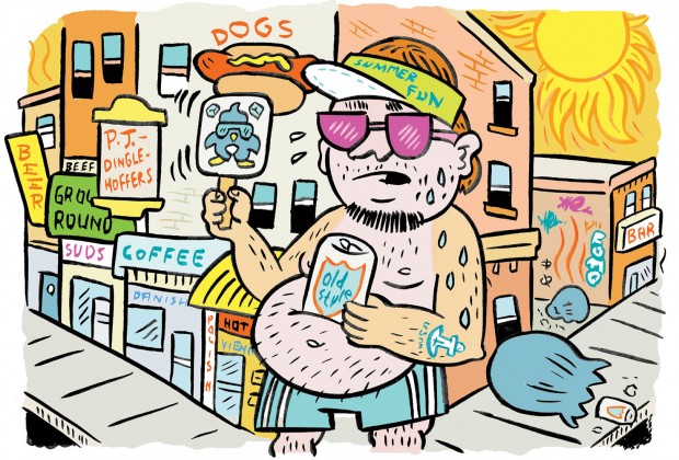 The city is louder, brighter, stickier, and more exposed in summer. Every inch above the blazing cement is hotter than the last. From the nipples up, you suffocate. This may be why all men in Chicago—no matter how fleshy and pale their salamandered bellies—take off their shirts at the nearest opportunity. It is the only city where I have seen a man fall asleep on a bench with a can of Old Style resting safely on the uppermost plateau of his stomach.