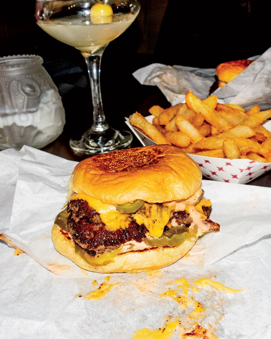 One-third-pound ground Angus chuck with American cheese, house sauce, housemade pickles, and caramelized onions on a sesame seed bun, $14
