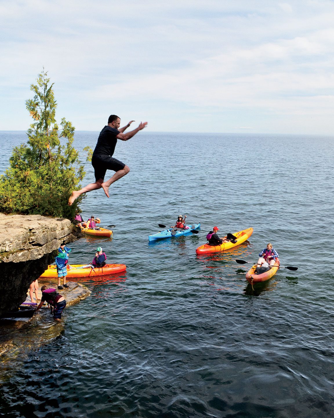The best way to see the splendor of Door County’s shore? The roughly four-mile-round-trip trek from Sturgeon Bay to Whitefish Dunes State Park led by Door County Kayak Tours ($145). On the way, you’ll explore the region’s rocky dolomite features and paddle near a blowhole at Cave Point County Park. Nicknamed Death’s Door for their shipwreck history, the waters around Door County’s peninsula are home to more than 275 lost ships, including the Australasia, a wooden freighter that sunk in 1896 that you can paddle over. Closer to shore, tourgoers can jump from a cliff into a bowl-shaped swimming hole known as the Devil’s Bathtub, which is less foreboding than it sounds. If you are up for more adventure, finish with a challenging two-mile out-and-back hike to the top of Old Baldy, the tallest dune in the park, at 93 feet above lake level.