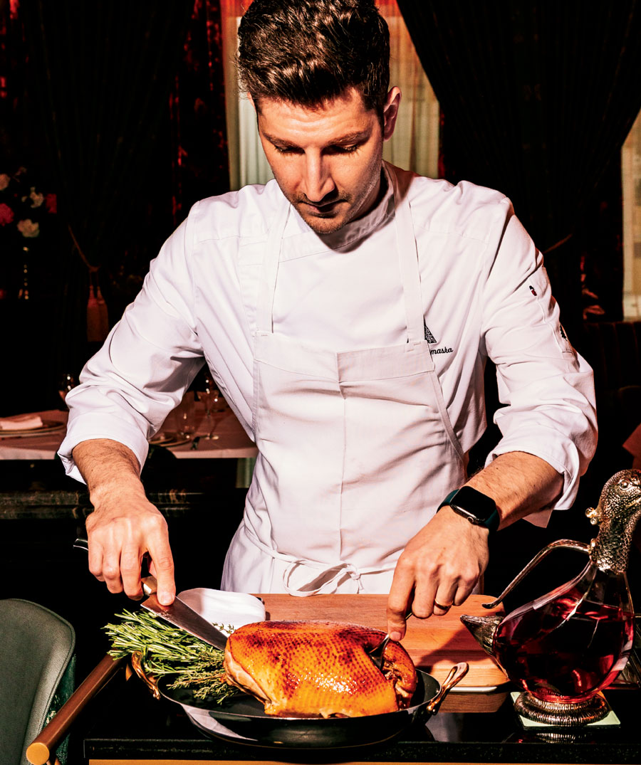 Chef Jenner Tomaska serving the duck à la pressePhotograph: Garrett Sweet