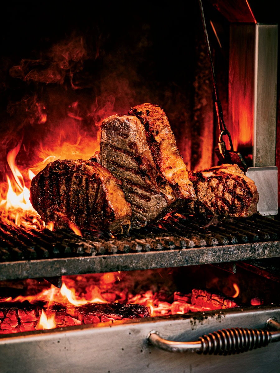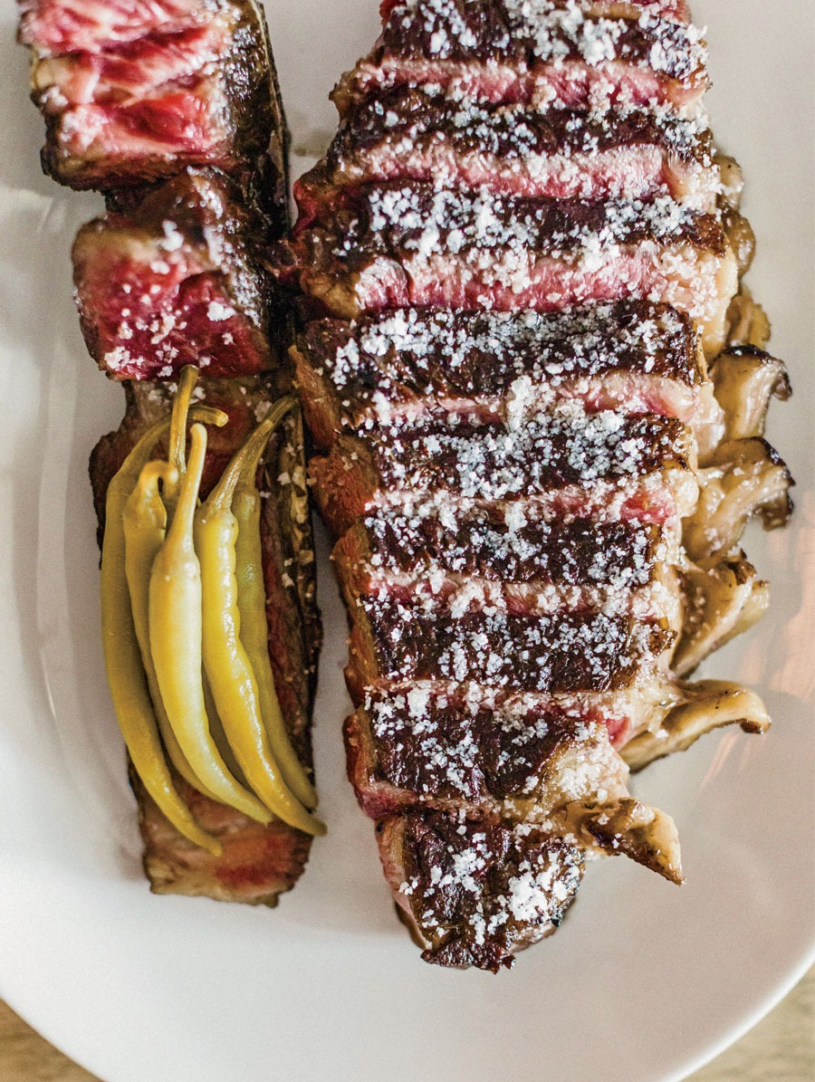 At Doug Psaltis’s Basque-inspired steakhouse, tucked inside the 142-year-old Flair House, you don’t order your standard filet or strip. Rather, a server comes to your table in the darkly intimate dining room proffering a silver tray on which the night’s cuts are laid out for you to choose from. The beef on offer: four varieties of txuleton (Basque bone-in rib eyes), along with nightly specials, like Tajima (Pennsylvania-raised Japanese cattle) or Australian wagyu, all with little tags letting you know their weight and provenance. Select one and pay by the pound; it’ll return perfectly cooked, sliced, and topped with a guindilla pepper. There are glam touches to accompany all this: caviar churros, truffle tortillas españolas, a chocolate-hazelnut cake adorned with gold leaf. Sound expensive? It is. But the experience here is unlike any other in town. — A.C.