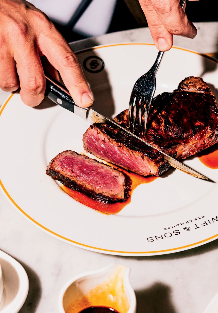 We go to steakhouses for many reasons, but when it is really and truly simply about the beef, book the omakase at Bonyeon. For $255, Sangtae Park offers a menu with 14 courses — 10 of which are beef and fully explore the flavors and textures of various cuts. This parade of bovinity includes yukhoe (beef tartare with smoked egg yolk served with a tiny cow cracker), tenderloin with rich bone marrow miso, and marinated galbi with pineapple kimchi (a play on Korean barbecue). You may want to have a salad for lunch that day. — A.C.