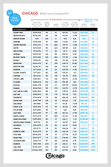 These charts were prepared using data supplied by the Multiple Listing Service of Northern Illinois (MLSNI), which annually lists about 90 percent of the houses and condominiums put up for sale in the Chicago area. In addition to charting home prices in the 77 Chicago community areas recognized by the U.S. Census Bureau, we have also tracked sales in most towns in Cook, DuPage, and Lake counties where figures were available. For the outlying counties—Kane, McHenry, and Will—we have listed a number of representative towns. There are two anomalies: In Cook County, the town listed as Barrington on the chart also includes Barrington Hills, Deer Park, Lake Barrington, North Barrington, South Barrington, and Tower Lakes. In Lake County, the town listed as Round Lake also includes Round Lake Beach, Round Lake Heights, and Round Lake Park.