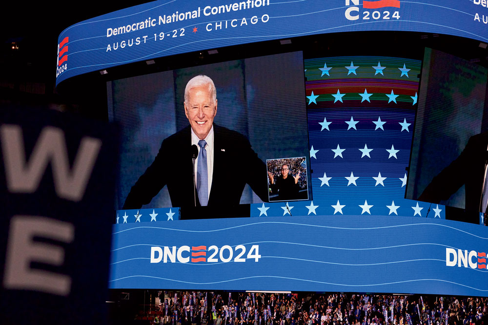 It can feel at times like Kamala Harris is running to be Trump’s successor, not Biden’s. Her champions (and the dozens of videos the audience is shown as reminders of her credentials) walk a fine line between owning what was achieved under Biden and offering a new path forward. It’s a balancing act: Pretend that the last four years didn’t happen, but also very much did. When Doug Emhoff, Harris’s husband, takes the stage, it’s a relief. There is, at last, a sense that an actual person is talking to us. That is why I don’t take notes while he talks. I can finally relax.