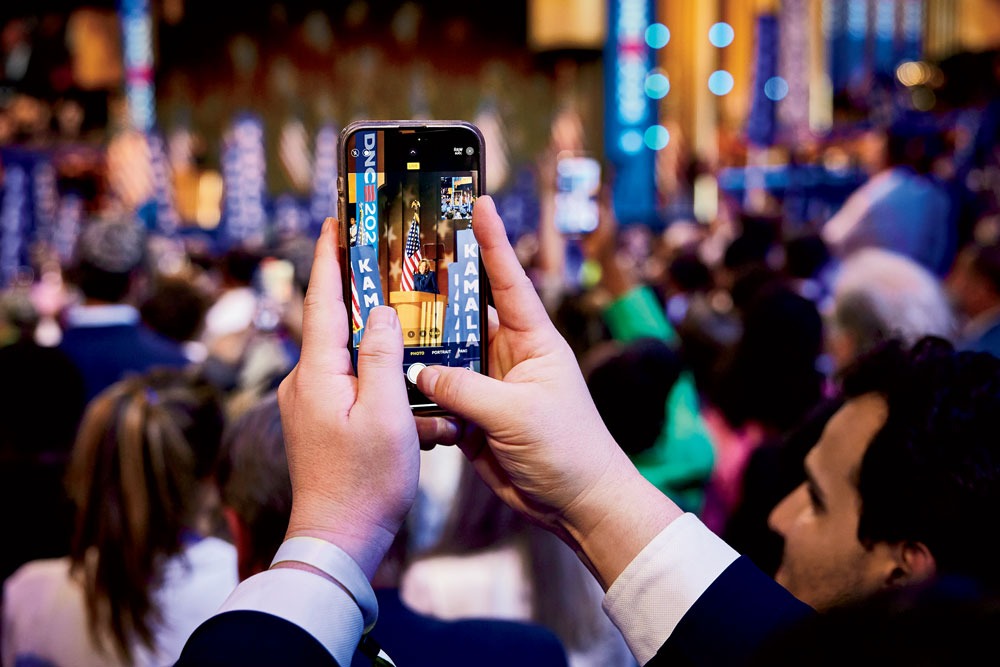 Moments later, everyone is cheering for Andy Beshear, but I can’t hear a word the governor of Kentucky says. That’s because, just behind me, in one of the United Center’s prime private boxes, Kamala Harris has just taken a seat. I am about 10 feet below our current vice president, and all the people in my immediate vicinity have turned away from the stage to take her photo. I do the same, of course, and immediately berate myself. Why do I need my own picture of Kamala Harris? Thousands of better ones exist online. I probably own the crappiest phone in the arena. Who do I even plan to show the image to? I guess I’m so tired that I don’t fully believe I am there. The photo will serve as proof that I was.