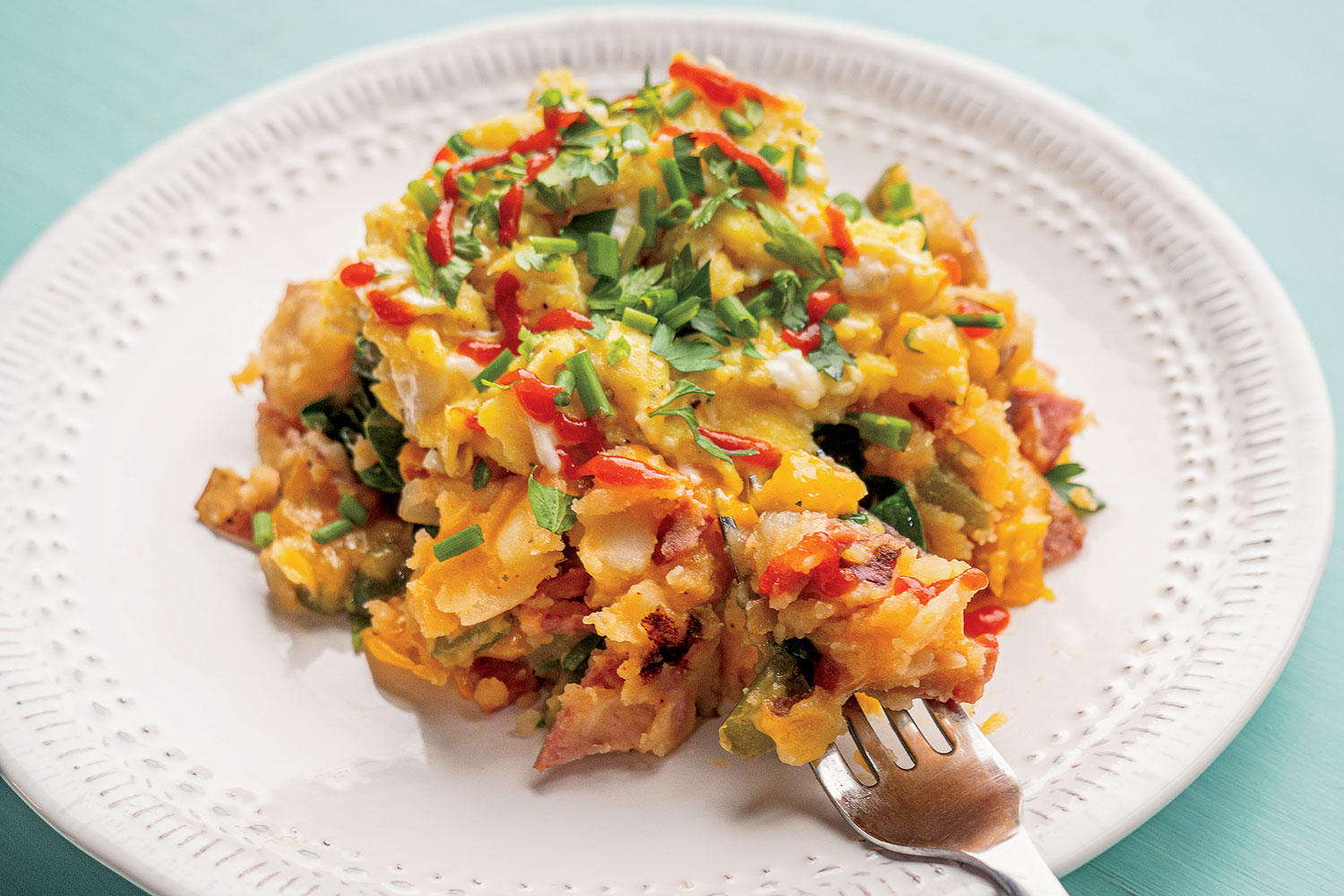This savory hash from Cliff Rome of Peach’s, the beloved Southern restaurant in Bronzeville, is a snap to make, easy to riff on, and tasty any time of day. Rome says the key to the dish is boiling the potatoes before sautéing them so they caramelize quickly in the pan with the rest of the vegetables. And if you’ve never tried duck bacon, this will make a convert of you — it’s lean and flavorful, and you can find it at most Mariano’s locations.