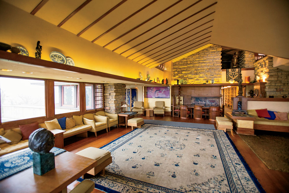 We were drawn to the Irwin Conference Center (formerly Irwin Union Bank; 1954), by Eero Saarinen. The glass-enclosed, open-plan building, capped by a roof with nine domes, represented a dramatic departure from the traditional idea of a bank as an imposing granite fortress. From there, we pointed the car to two more Eero Saarinen buildings: the North Christian Church (1964), a hexagonal sanctuary crowned with a 192-foot spire, and the Miller House (1957), the former residence of J. Irwin Miller, which features one of the earliest examples of a living room conversation pit.
