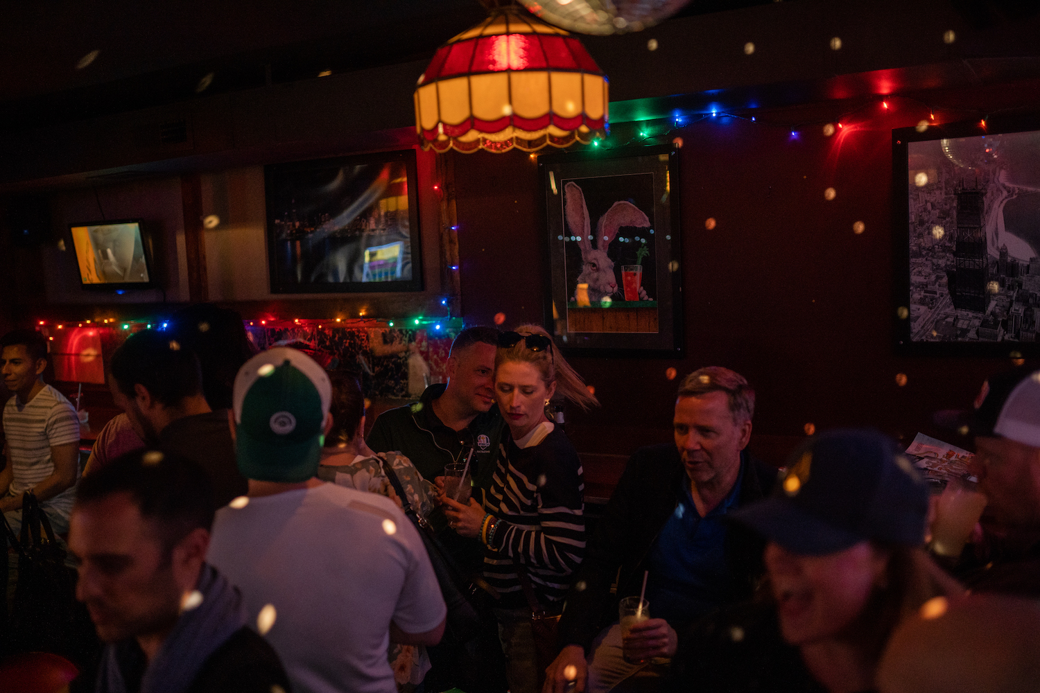 Opening its doors in 1984, Second Story (157 E. Ohio St. #2) is perched above Sayat Nova in Streeterville, steps from the Magnificent Mile. But decades earlier, the area was considered part of Tower Town, a neighborhood named for its proximity to the Water Tower that formed the city's queer epicenter until the 1960s and '70s.Photo: Pat NabongTributes to founder John Tessler hang on the wall. "We affectionately called him Grandma," bartender and manager Brian Mobley remembers. “He'd already had a full career. This was his way to keep busy after he retired, so he opened a little dive bar downtown." Tessler died in 2012.Photo: Pat NabongA lot has changed since Mobley, pictured above, started working at the bar 11 years ago. “When the straight people came in, as soon as they realized it was a gay bar, they'd turn around and leave," he says. "Today, they're like, 'Oh, it's a gay bar. I guess we'll stay around and have a drink.' It's not as big of a deal as it has been."Photo: Pat NabongSecond Story patrons hold hands.Photo: Pat Nabong“This is one of the first bars I've been to since I could drink, actually,” 34-year-old Gerald Murray says. “It adapts to its people and [its] needs. Its standards haven't really changed too much, but it's changed in the sense that it's [now] accommodating to whoever wants to come in and socialize.”Photo: Pat NabongSecond Story's decor looks original, but according to Mobley, appearances can be deceiving. “Everything here has pretty much been replaced since I've been here, but it's all disguised to look exactly as it was before. People can not come here for years and years, and it's still exactly the way they left it — it's still like their home."Photo: Pat NabongMichelle Buckle, an tour bus driver from Nashville, checks her phone. Whenever Buckle gets some time off on the road, she checks out gay dive bars in different towns and cities.Photo: Pat NabongMobley pours drinks for a customer.Photo: Pat NabongParham Eftekhari, a Second Story regular, hugs his partner. “[Gay bars are] still an important safe space, particularly if you're not from a big city," he says. "The first time I came to a gay bar, it was scary, but it was also a huge relief to see other people who are what you are."Photo: Pat Nabong“As the world's changed to be more accepting of gay lifestyles, marriage, culture, and everything, now straight people come here too,” Mobley says. “At the end of the day, it's a neighborhood bar."Photo: Pat Nabong
