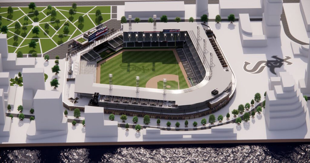 Specifically, we built a virtual stadium, a vision for a new home for the White Sox, who are currently looking to construct a new ballpark to replace Rate Field, perhaps in the South Loop.