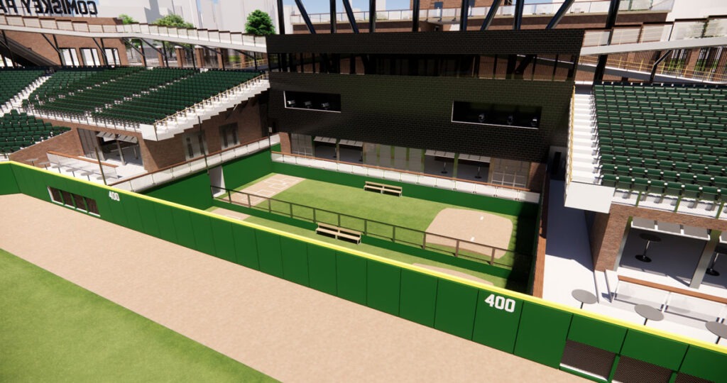 One wow factor in this project? “The cheap seats do not offer a cheap view,” Stamm says. “The statistically worst seat in the house is still much closer to home plate than you would be in any modern outfield. That’s what the average fan would love about this place.”