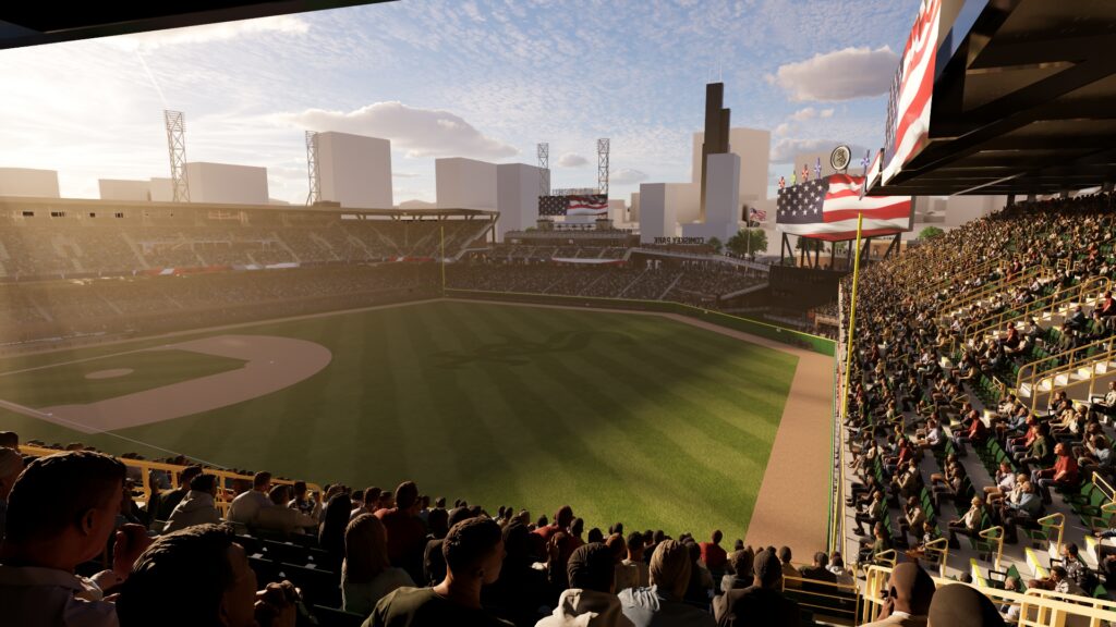 We aren’t from Chicago, but our choice of Chicago was purposeful. We wanted to create this vision of a ballpark for a team sorely in need of it. The White Sox famously missed the retro revolution with the regrettable choice to build Rate Field. Camden Yards was the next stadium to open. But with an agreement in place to transition to new ownership, and a desire to build a new stadium, there is an immense opportunity to get it right with a new kind of ballpark on the South Side.