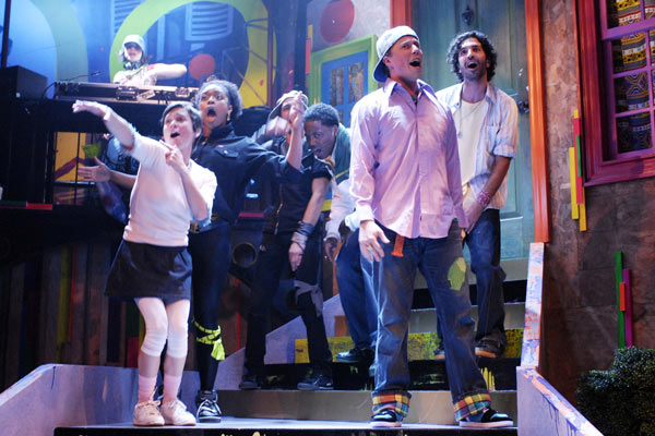 The 2008 cast: (from left) DJ Adrienne Sanchez, Elizabeth Ledo, Ericka Ratcliff, GQ, Postell Pringle, Jackson Doran, and JQ.