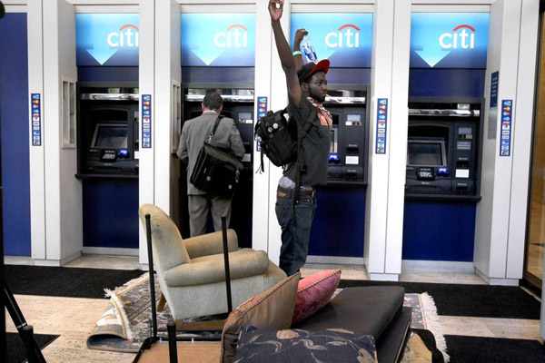 So I was completely unsurprised to see that the first Occupy protest of NATO week was moving living-room furniture into a Citibank.
