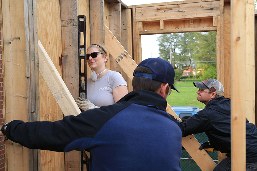 Eya Louis is one of Habitat’s West Pullman volunteers. Louis, who lives in the neighborhood, says building homes from scratch is part of West Pullman’s history. Her section, Maple Park, was constructed in the late 1950s and early 1960s by working class African-Americans who were looking for a safe South Side neighborhood to settle in. (At that time, the neighborhood was almost exclusively white; it is now 93 percent Black and 1 percent white, a changeover that occurred in the 1970s.)
