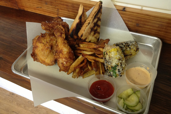 We’re guessing Scesnewicz meant “not precious” when he said “not creative,” because the menu bears minute but important differences from the standard barbecue lineup. For example, the brisket is served with a Thai-style Tiger Cry sauce, made from lime juice, palm sugar, chili flakes, garlic, and sometimes tomato or scallions. The elotes come with spicy Japanese mayonnaise. The fried chicken includes sour anise, cinnamon, and coriander.