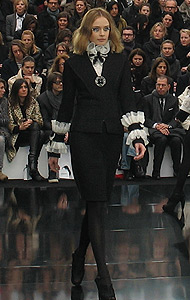 Kate Moss made her first front-row appearance of this fashion week at Chanel, and she caused a major tussle when she walked in. Photographers clamored for her photo in the very small space between the lacquered set and front row, and things got physical. Two were escorted away (Kate, baby, I know how you feel). Beth Ditto was there, as well as Lily Allen and Claudia Schiffer.