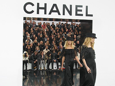 Chanel laid off 200 employees in December of 2008, and I wondered if any of the production values would be affected as a result. But no, it was still the same show-stopping venue (the Palais Royale), still a small goody bag (lip gloss and a nail polish), still an elaborate set.